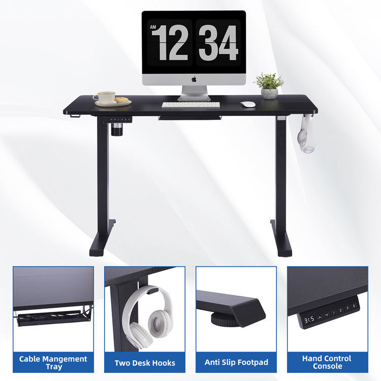 Ergonomický výškovo nastaviteľný elektrický stojanový stôl je navrhnutý tak, aby poskytoval zdravé a pohodlné pracovné prostredie. Umožňuje používateľom nastaviť výšku stola podľa ich výšky a preferencií, vďaka čomu je vhodný na prácu v stoji alebo v sede. Tento druh stola môže pomôcť zmierniť zdravotné problémy spôsobené dlhým sedením, ako sú bolesti krku a chrbta, podporiť krvný obeh a zlepšiť držanie tela. Zmenou spôsobu práce môžu používatelia zvýšiť sústredenie a produktivitu a znížiť únavu a nepohodlie. Je vhodný pre rôzne miesta, ako sú kancelárie, domáce kancelárie, školy atď., čím poskytuje používateľom flexibilnejšie a zdravšie pracovné skúsenosti.